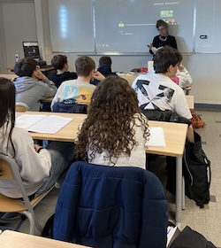 A cette occasion, les élèves de la classe de 2de7 du lycée Les Eucalyptus ont pu participer à une rencontre/masterclass avec l’auteure et critique d’art niçoise Sophie Braganti. Instants rares d’une grande authenticité où les élèves ont voulu en savoir plus sur le parcours de l’auteure. Un atelier d’écriture poétique guidé par Sophie Braganti qui donna corps à des poèmes tercets et cadavres exquis imaginés par l’ensemble de la classe !