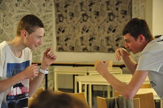 Tu sais quoi, le théâtre, c’est génial ! Ca a commencé en février, il faut que tu viennes voir, tu vas kiffer…c’est le mardi et tout nouveau aussi le mercredi. On se réunit après avoir avalé un sandwich. C’est simple mais un peu bizarre : on se met en cercle, on tape dans les mains et vlan on s’envoie des balles et en plus on prononce des formules bizarres, un truc de ouf du style « abracadabra », non mais c’est magique et marrant. J’ai appris par cœur : « que lit Lili sous ce lilas là, Lili lit l’Iliade. »